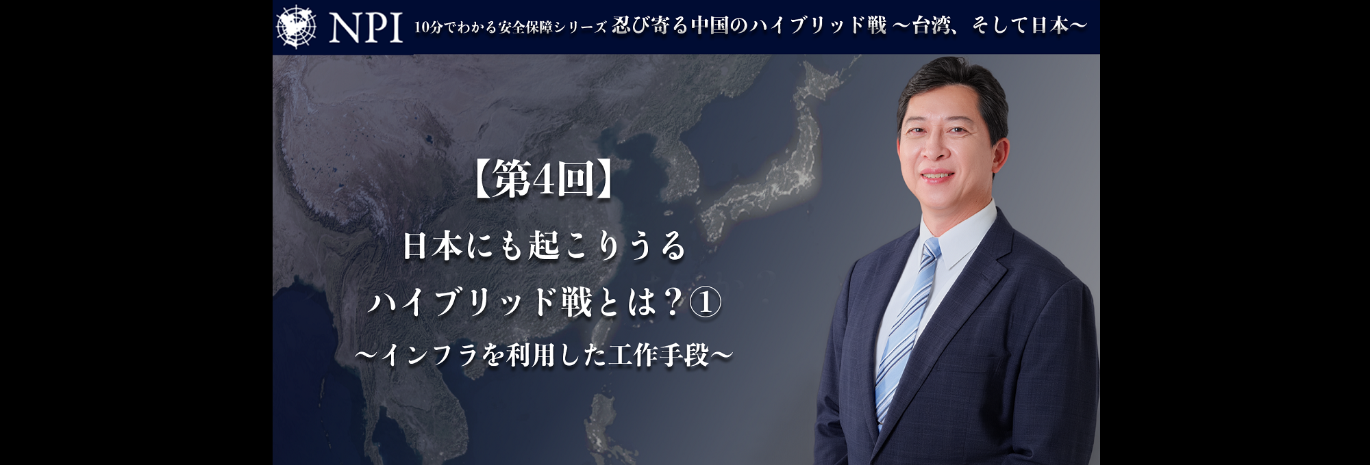 海洋安全保障研究委員会によるYoutube動画「10分でわかる安全保障シリーズ 忍び寄る中国のハイブリッド戦~台湾、そして日本~」の第4回「日本にも起こりうるハイブリッド戦とは?①~インフラを利用した工作手段~」を配信しました。