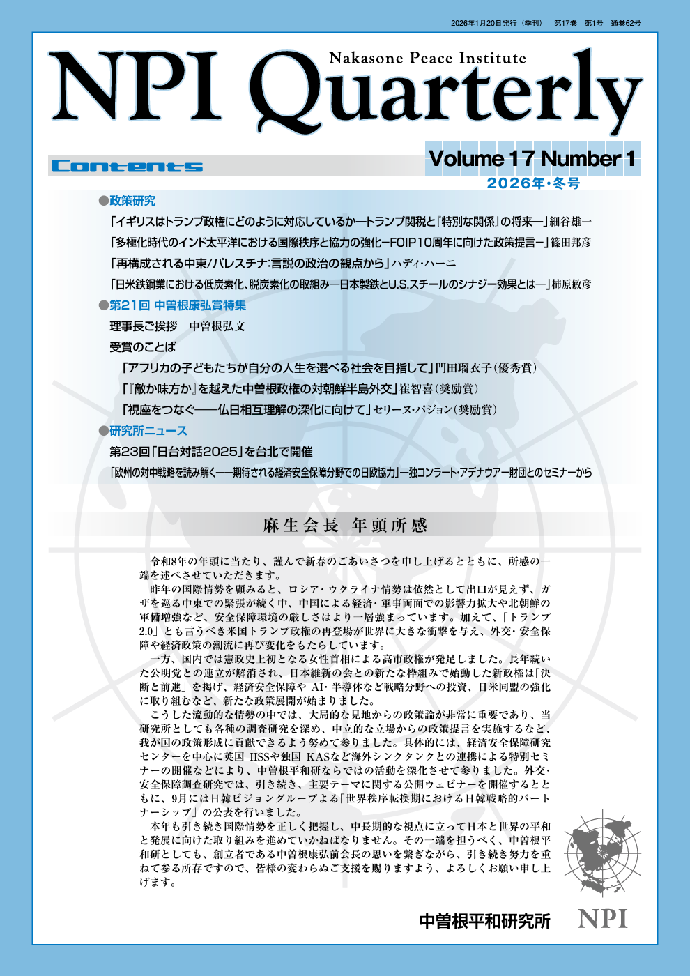 NPI Quarterly 第17巻第1号を発行しました。